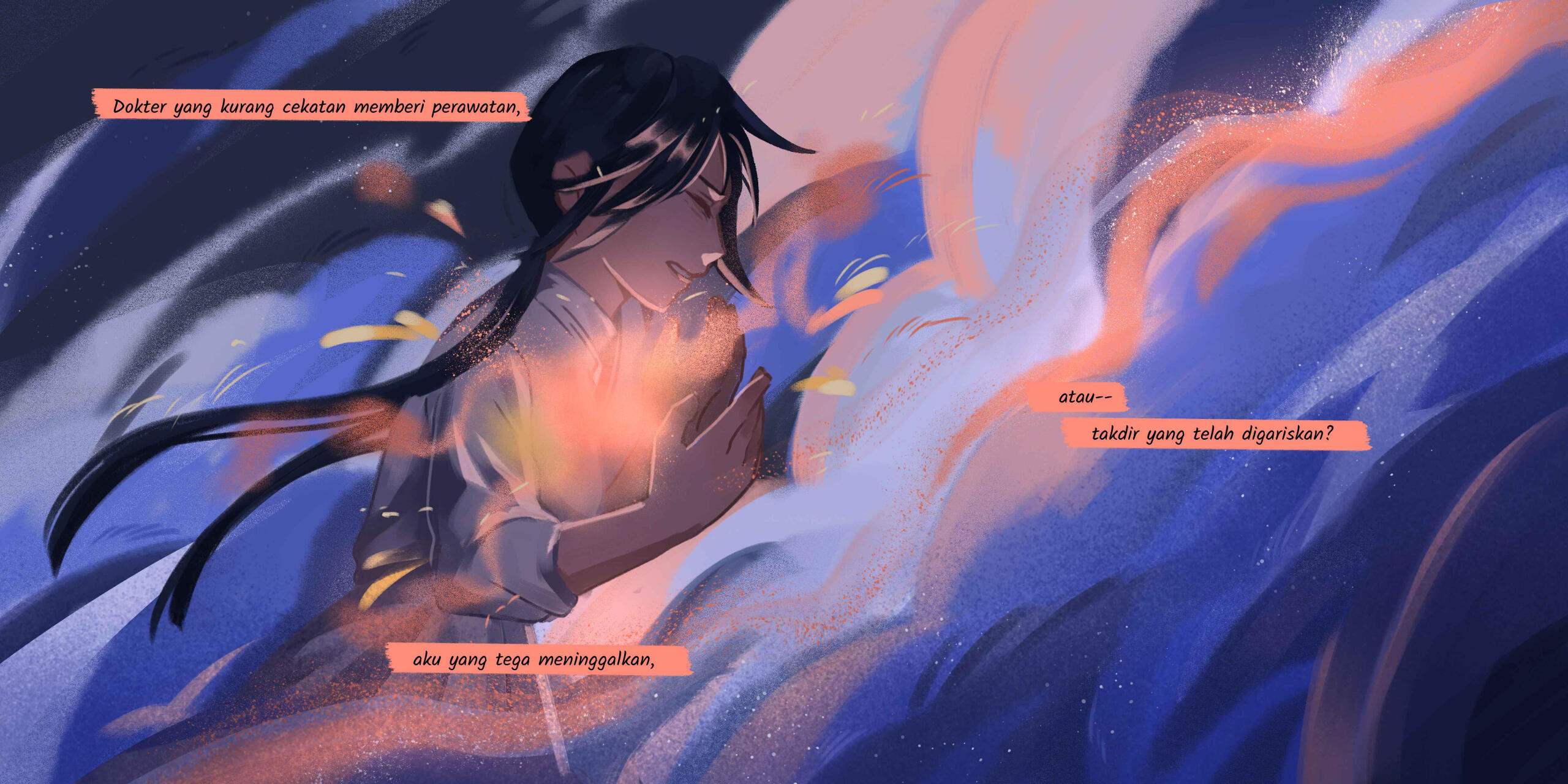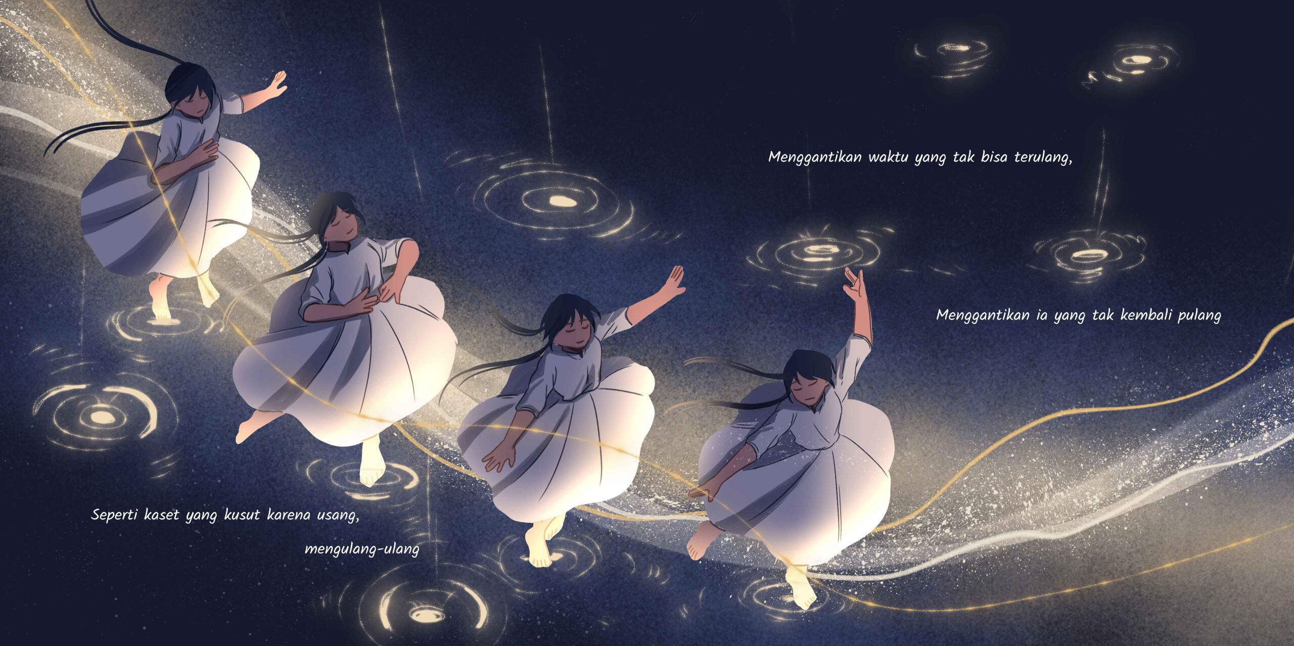 "Akan Waktu Temani" is a 60-page illustrated book made in 2023 for my Undergraduate Thesis Project. The book consist of a short poem-styled story. The story revolves around the girl who lost his brother and how she deals with the grieving phase.