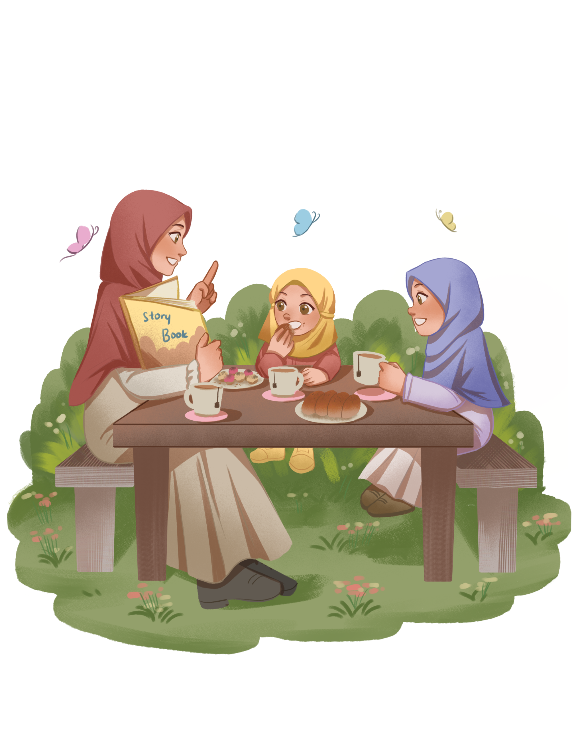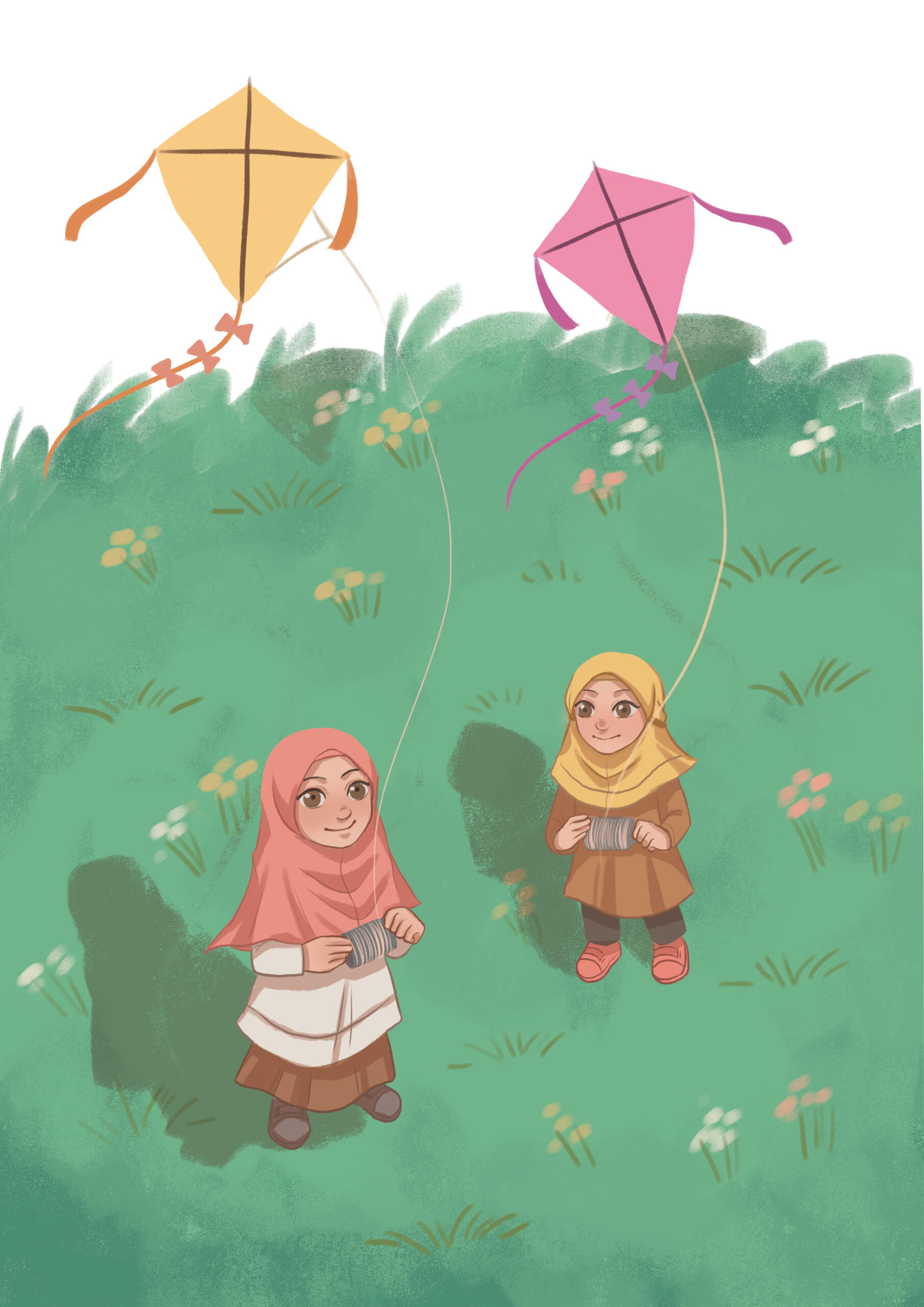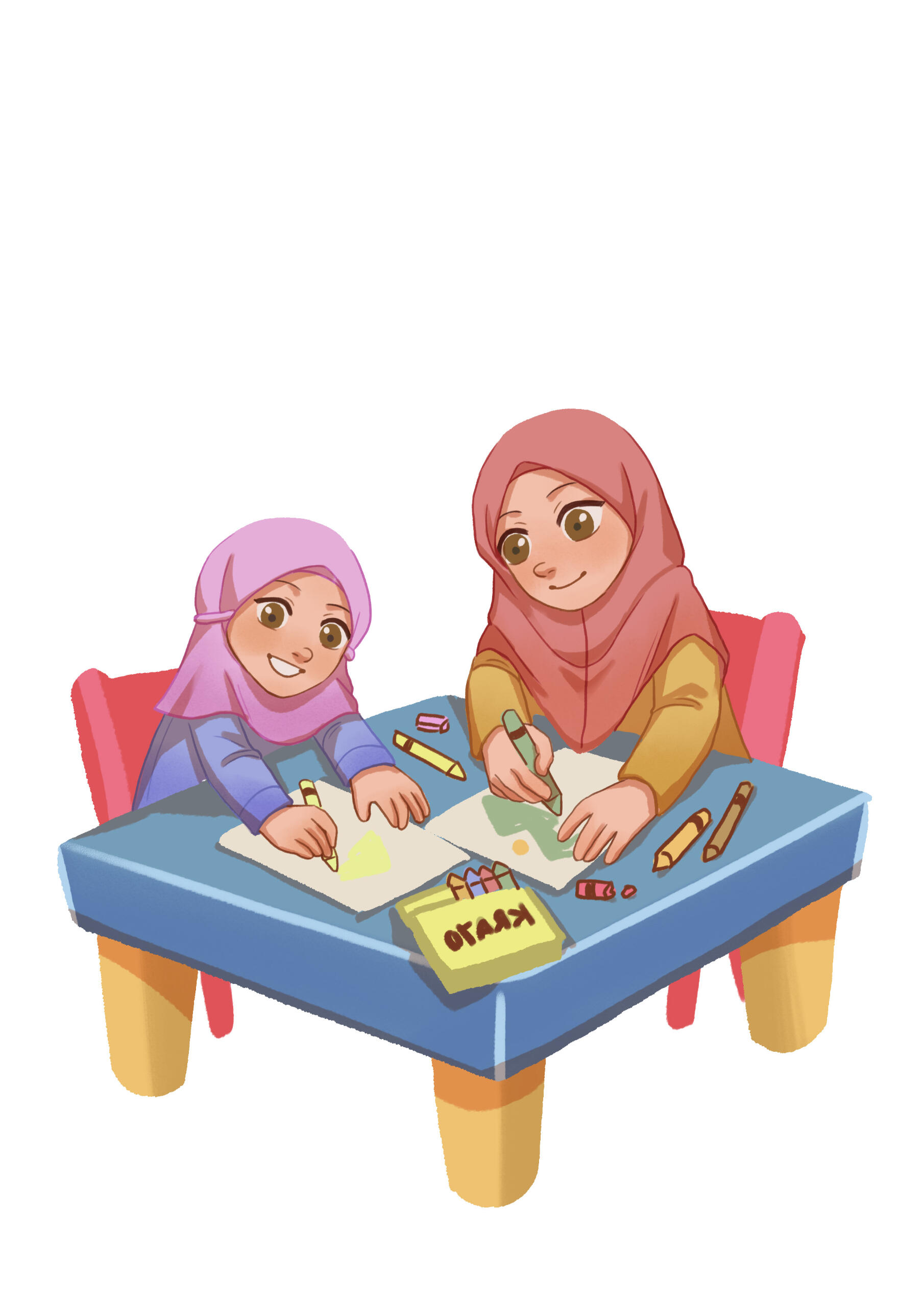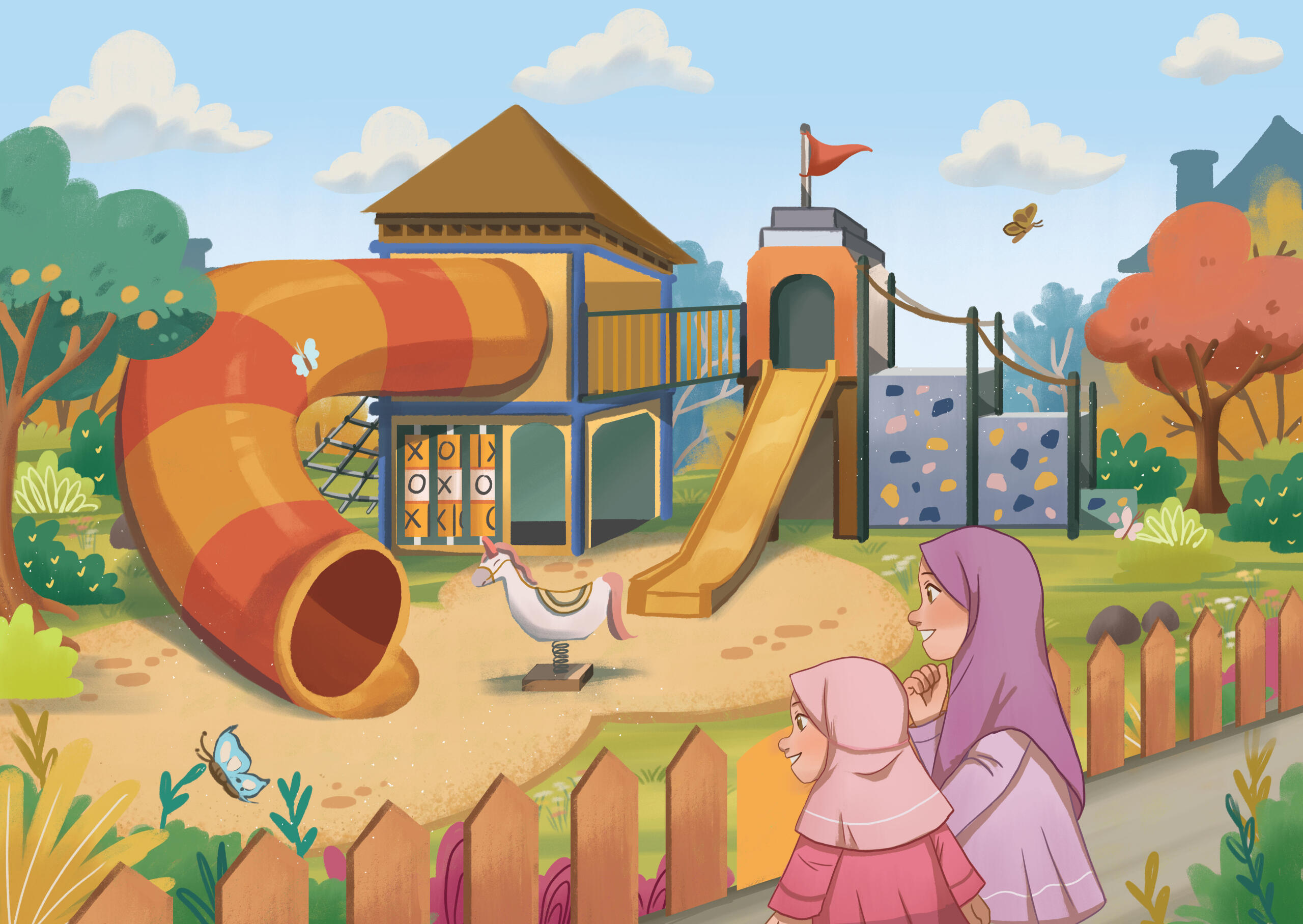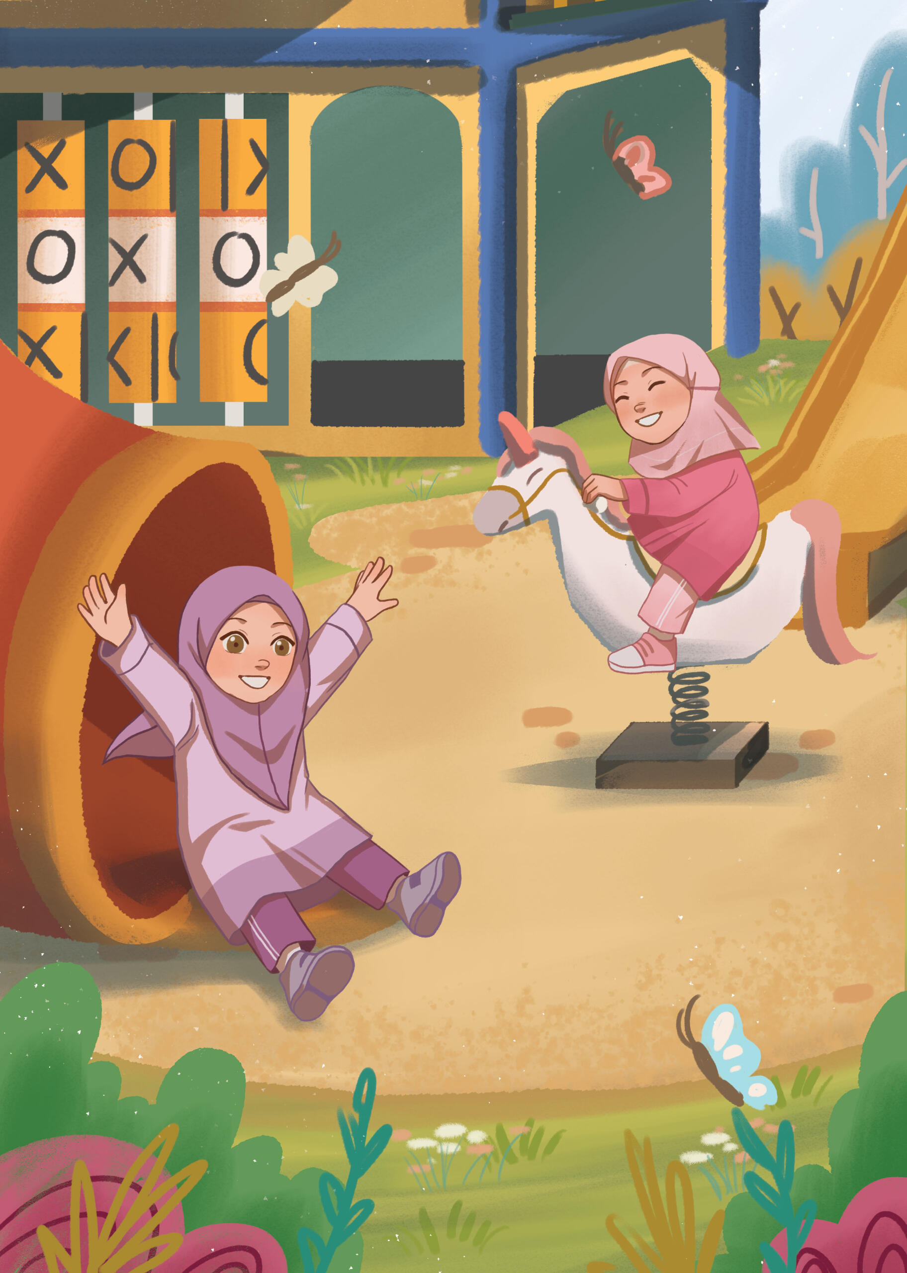 Safaa and Safiyyah were so excited to play at the new playground near the convenience store. Their exciting adventure in the playground made them forget about the weather and brought them into an uncomfortable situation.I worked on the interior illustration and book cover for The Safaa and Safiyyah Publication first story book series.